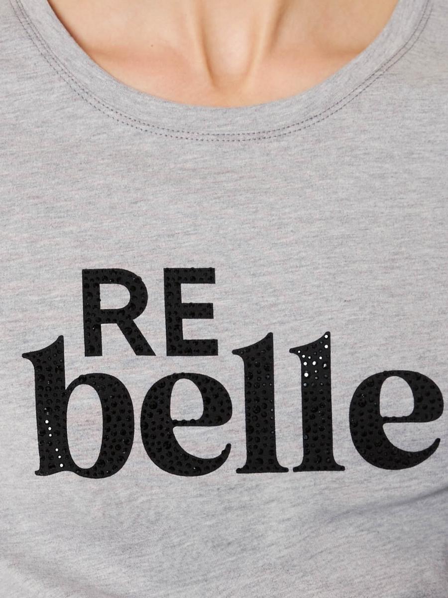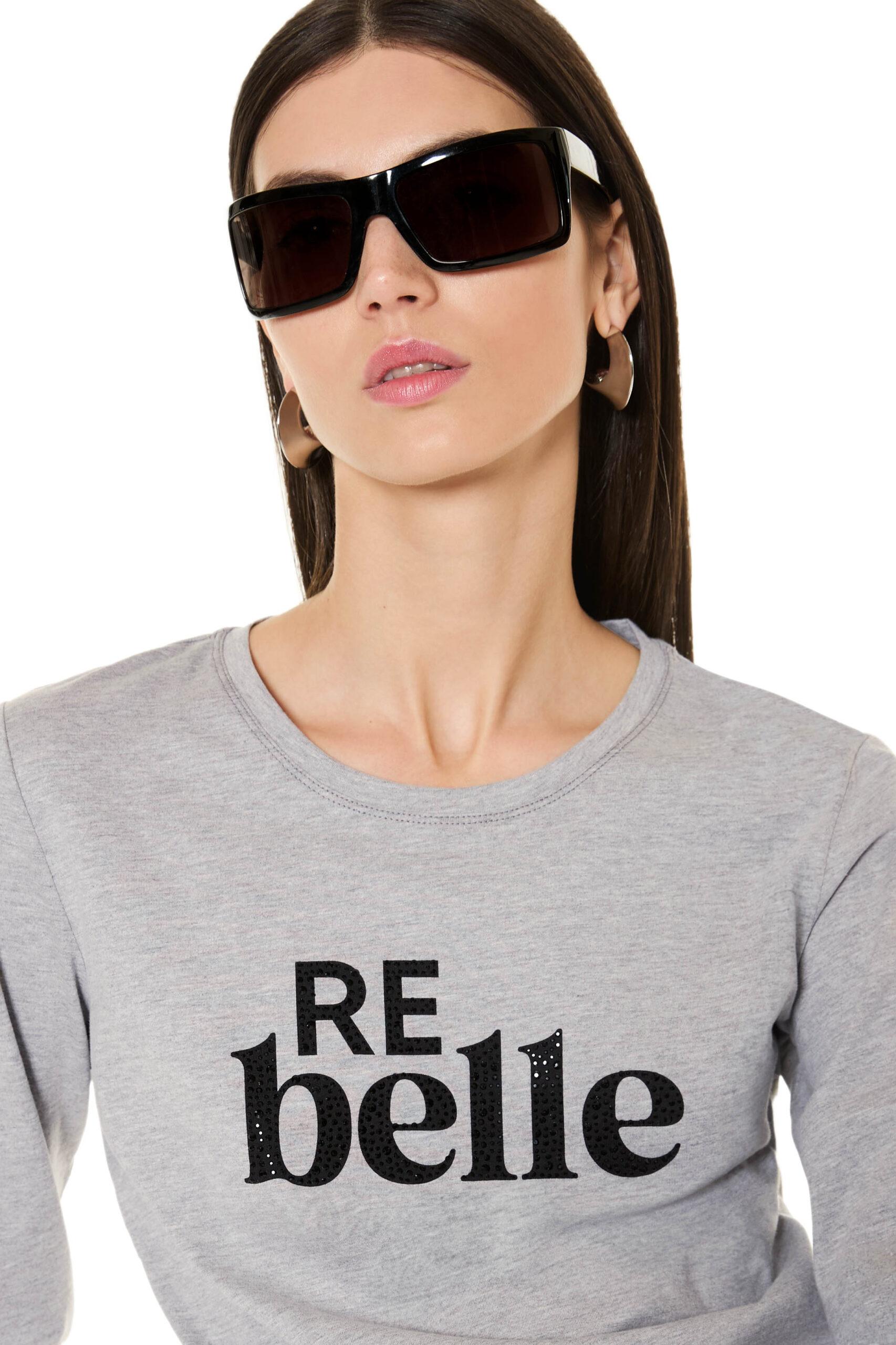 Caratterizzata da stampa frontale “REBELLE”, in colore nero con strass in tono