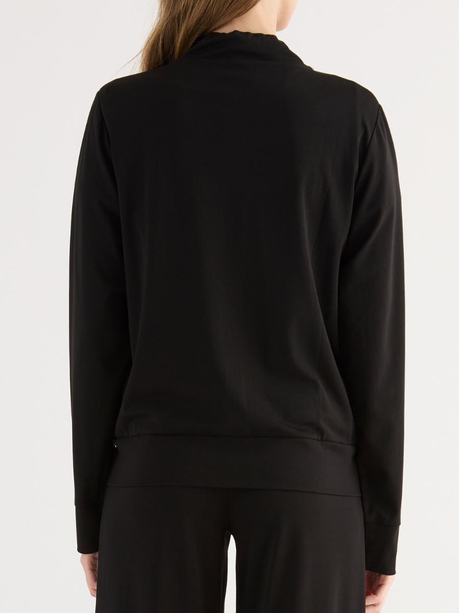 Felpa realizzata in morbida viscosa stretch, con chiusura zip e cappuccio.