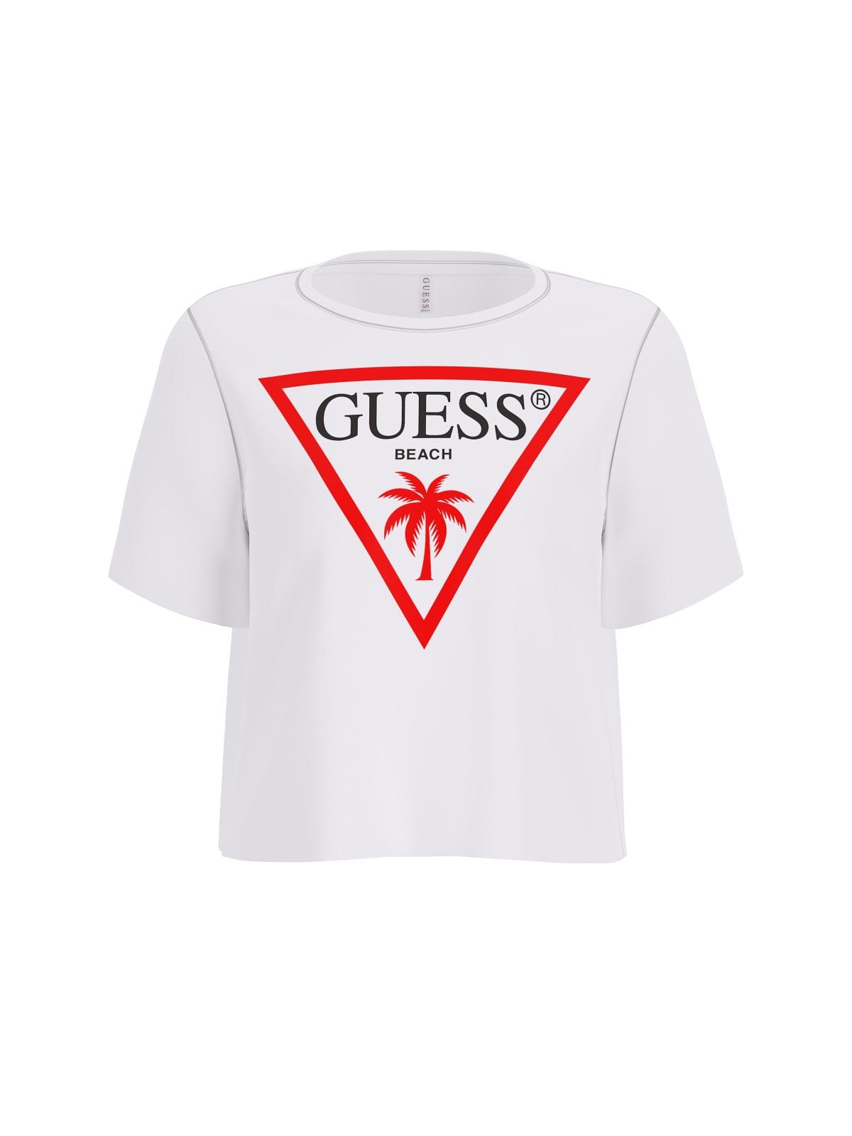 Girocollo e manica corta, con logo centrale stampato a contrasto