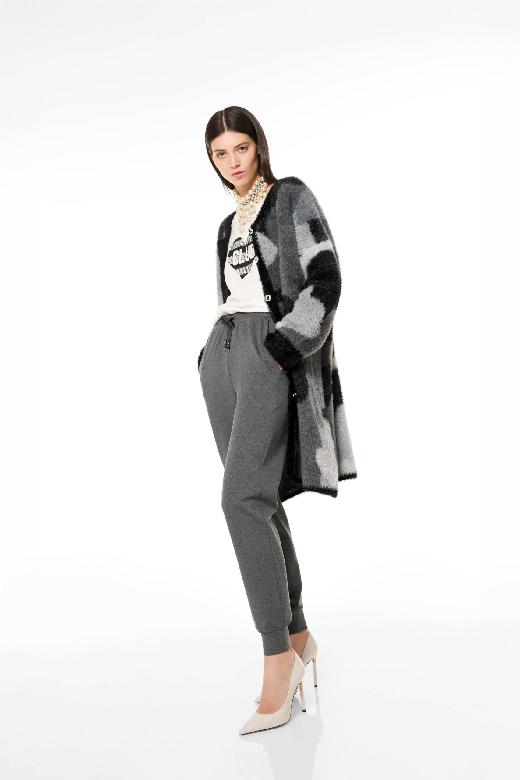 Cardigan realizzato in morbido tessuto pesante, pensato per offrire calore e comfort nelle giornate più fredde.