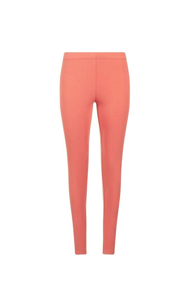 Pantalone liscio modello fuseaux in tinta unita arancione mattone, con comodo elastico in vita.
