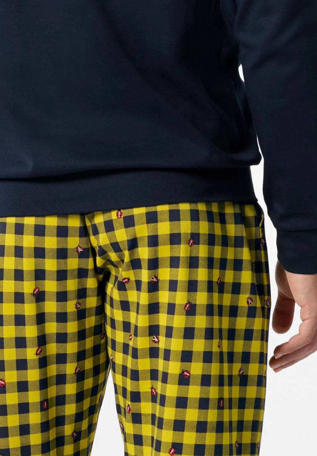 I pantaloni in fantasia quadro gialla e blu, con simpatica stampa Coccinelle, presentano tasche laterali, coulisse regolabile in vita ed elastico alle caviglie per una vestibilità moderna e confortevole.