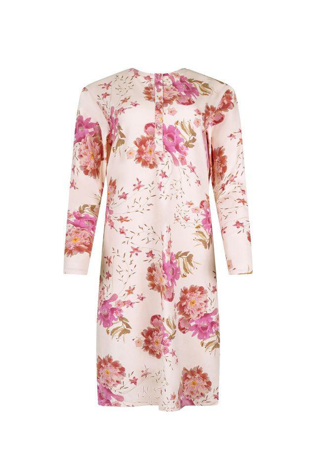 Camicia da notte manica lunga con scollo serafino, con chiusura di bottoni fino a sotto-seno.