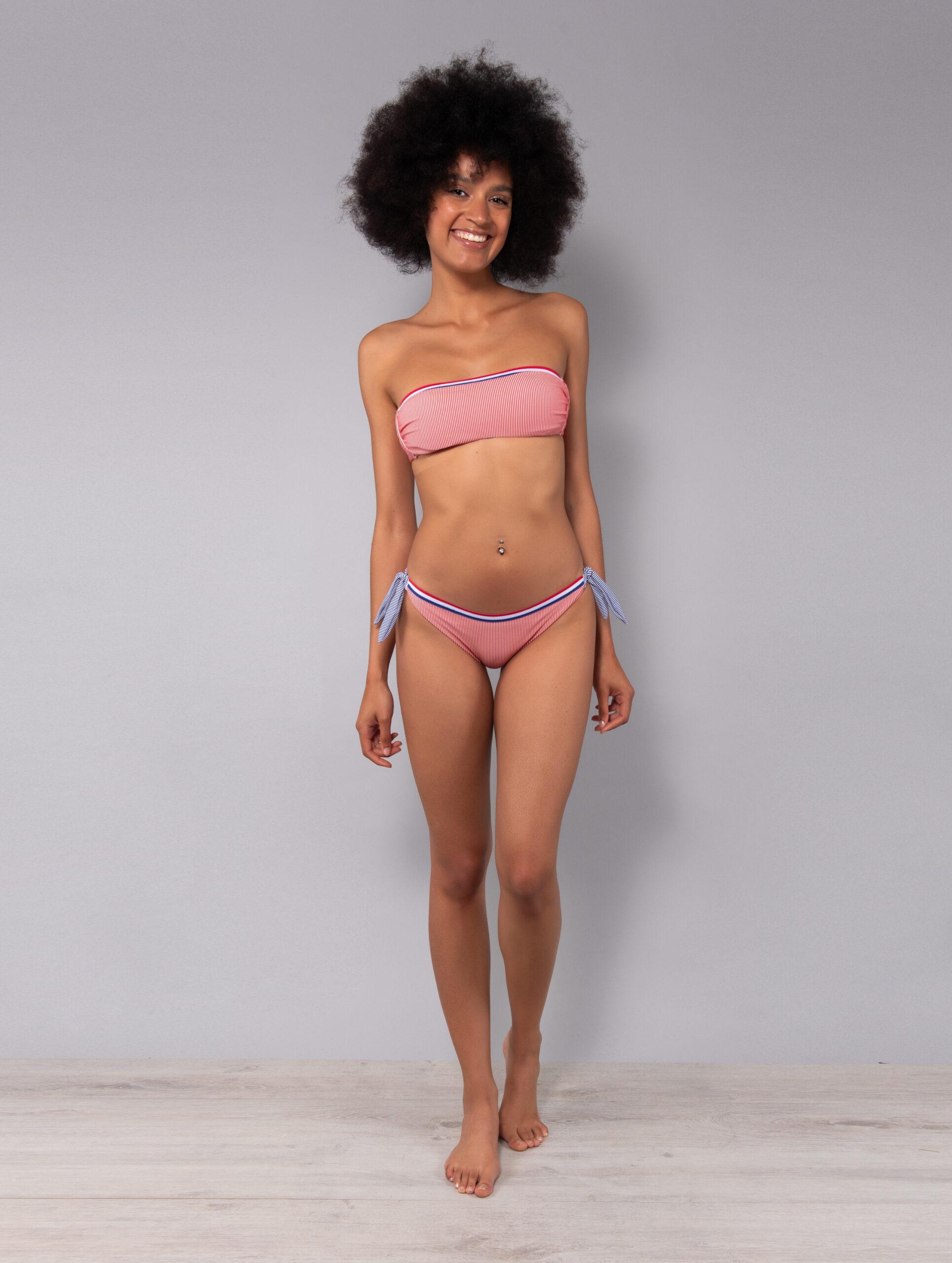 Lo slip annodato, ha un taglio classico e si regola sui fianchi tramite fiocchi, per adattarsi perfettamente al corpo.