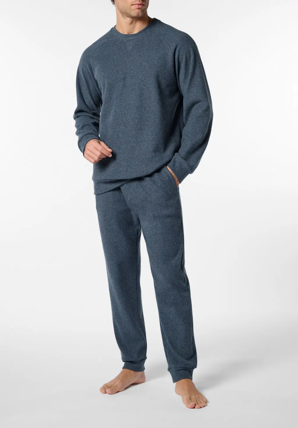 Tuta girocollo in tessuto caldo effetto punto Milano jacquard con finissaggio seta, ideale per affrontare le stagioni fredde con comfort.