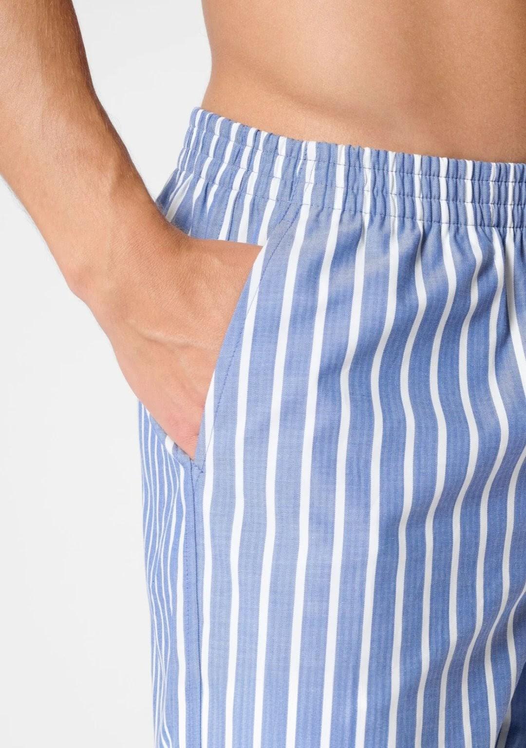 • Pantalone corto modello bermuda con fantasia di righe bianche su base denim. Realizzato in 100% lyocell, una fibra di origine naturale derivante dall’eucalipto. Fibra fresca e leggera, perfetta per la stagione più calda.